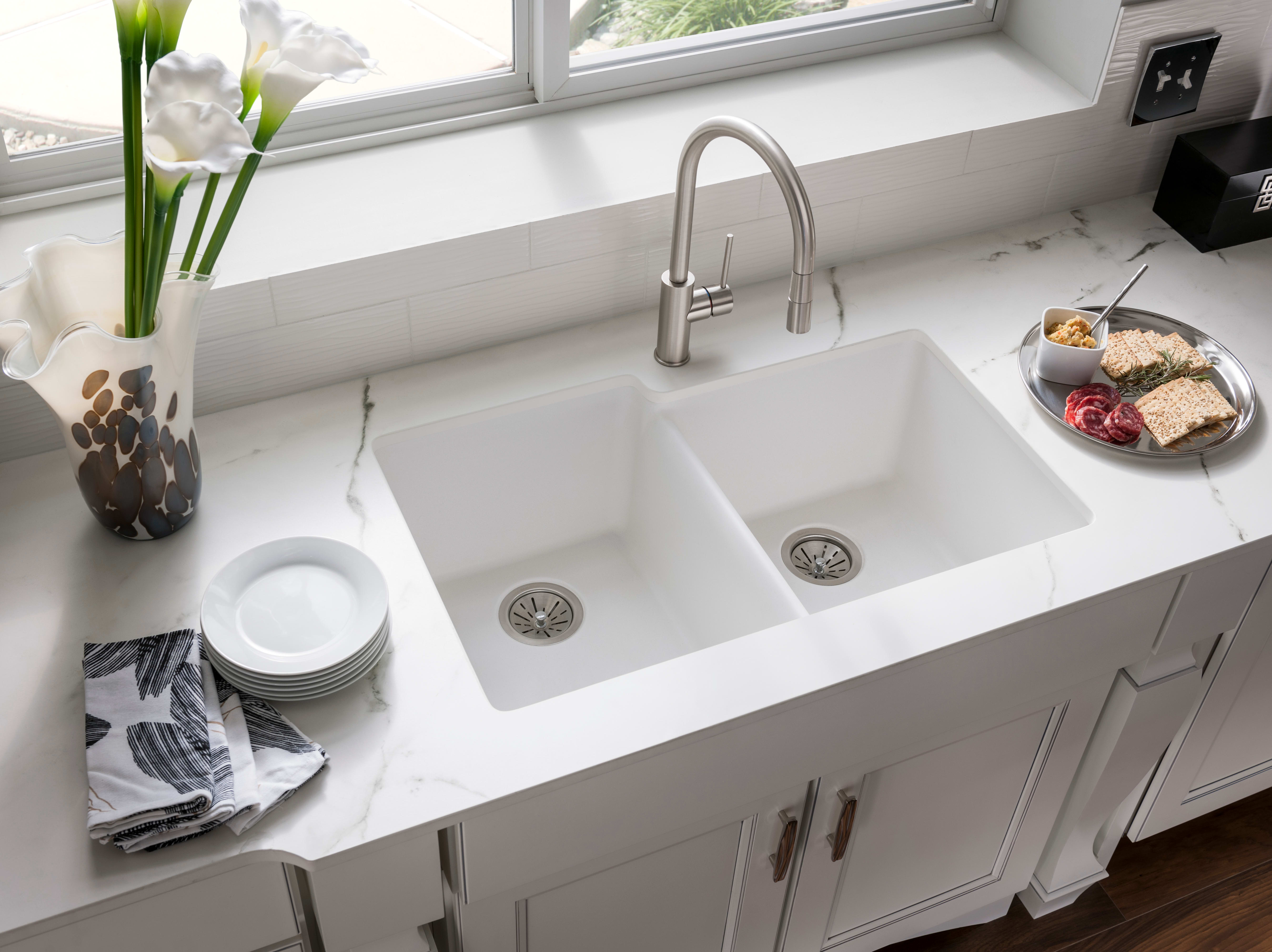 Price and stock could change after publish date, and we may make money from these links. 18.85% of the kitchens are considered white. Apr 19, 2021 · using glass display cabinets to showcase tableware that complements the subway tile backsplash is the perfect way to make a statement. As the #1 faucet brand in north america, moen offers a diverse selection of thoughtfully designed kitchen and bath faucets, showerheads, accessories, bath safety products, garbage disposals and kitchen sinks for residential and commercial applications each delivering the best possible combination of meaningful innovation, useful features, and. Whether it's a kitchen sink or a prep, bar or laundry sink, this composite sink has the durability you need to take on tough tasks.